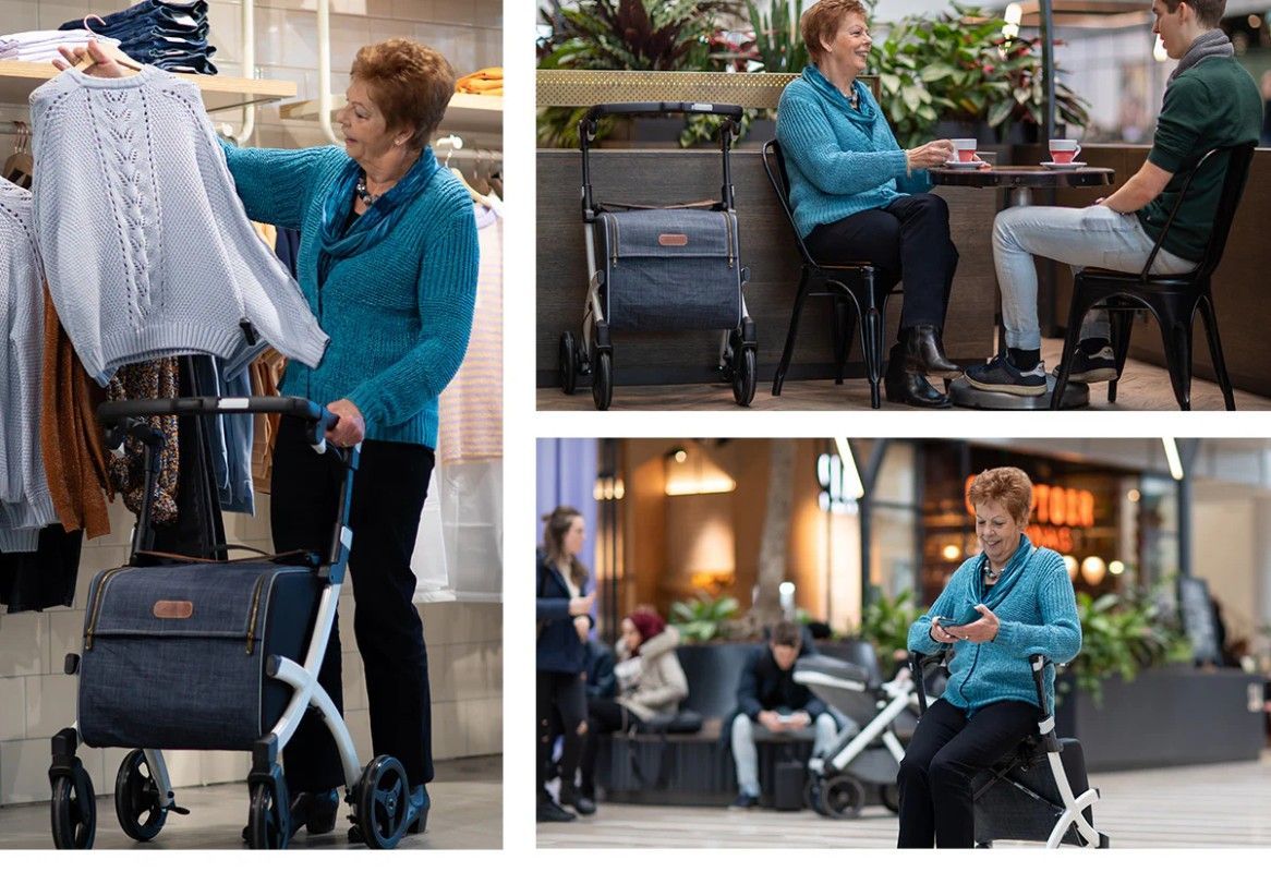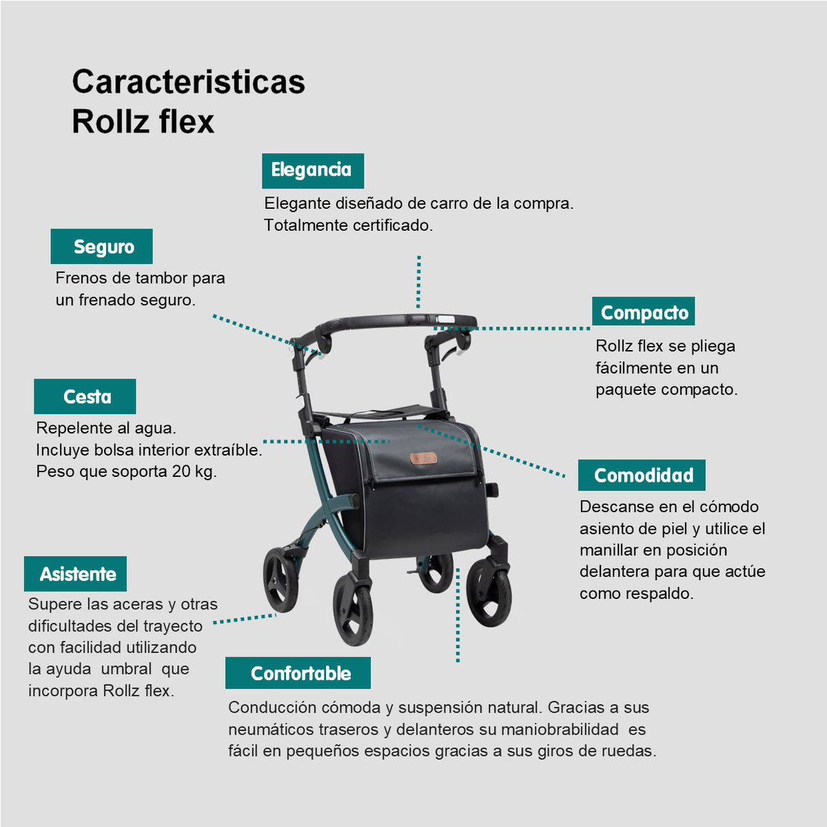 Con el Rollz Flex también disfrutarás al ir de compras. Este versátil andador por la capacidad y funcionalidad de su gran bolso es ideal para guardar tus compras diarias o tus pertenencias. Además, para que el bolso de diseño fuese más útil y práctico, incorpora una práctica bolsa lavable que puedes extraer con facilidad de su interior, cremalleras a ambos lados para su apertura y para la seguridad de lo que guardes en él. Su capacidad esta diseñada para 25 litros y soporta un peso de hasta 20 kilos. También te permite sentarte para descansar en su cómodo asiento de piel sintética.
