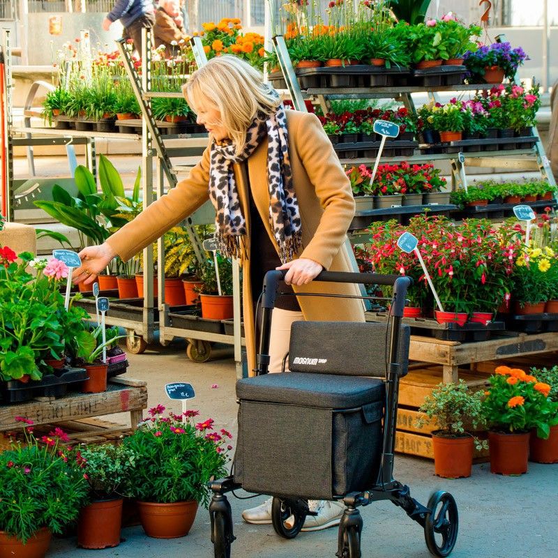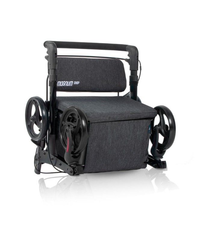 Compre con estilo, comodidad y seguridad con el nuevo andador y carro de compra Magnum Shop: una solución innovadora para aquellos que buscan comodidad, estilo, seguridad y practicidad en su vida diaria.Cuenta con una amplia cesta de gran tamaño, con una capacidad de carga de 24 litros y un peso máximo de 15 kg.Además, incorpora una bolsa extraíble y lavable de gran tamaño en su interior.