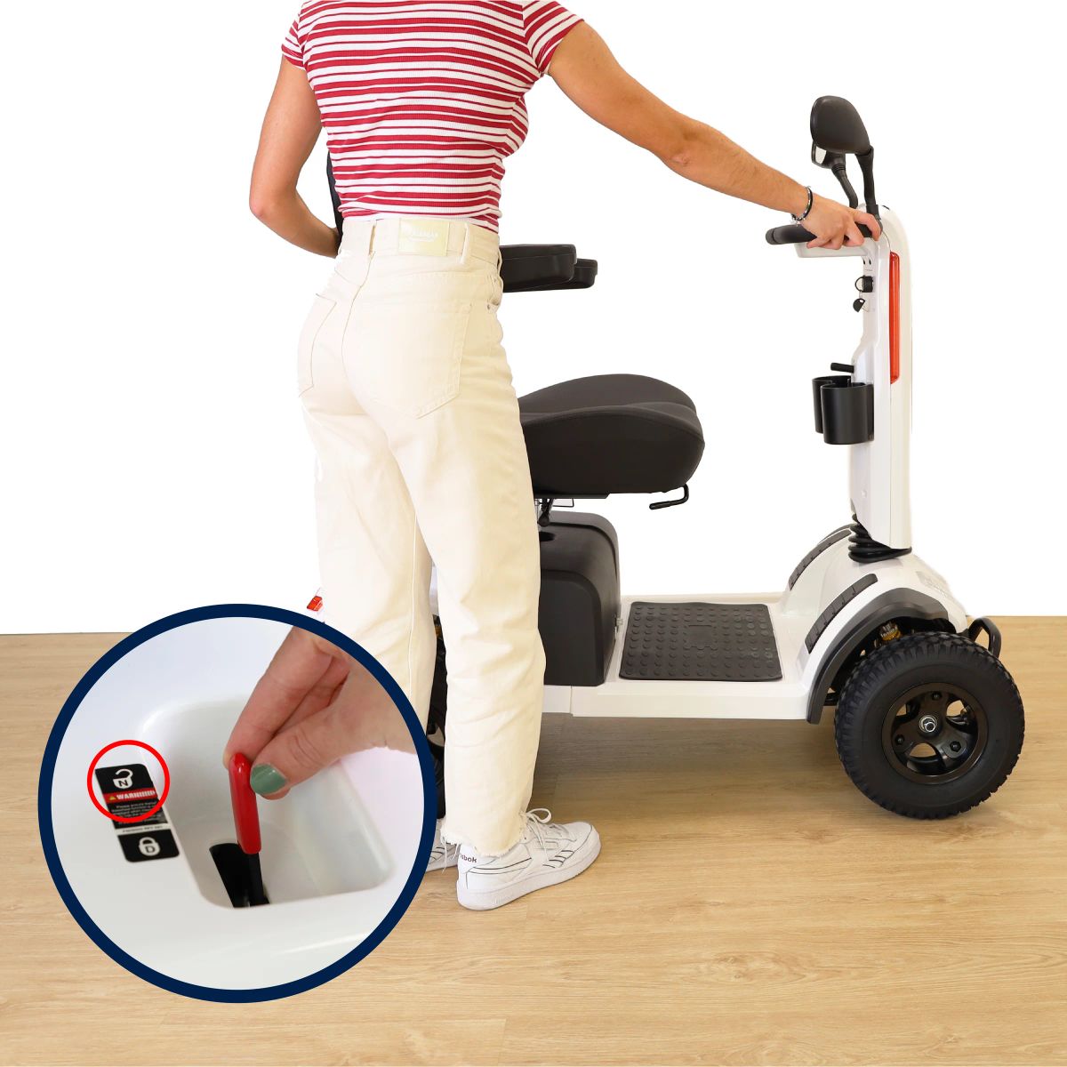Ajustes personalizados disponibles como el asiento giratorio, la regulación de la distancia entre asiento y manillar o sus reposabrazos abatibles que mejoran el acceso y la comodidad durante el uso.