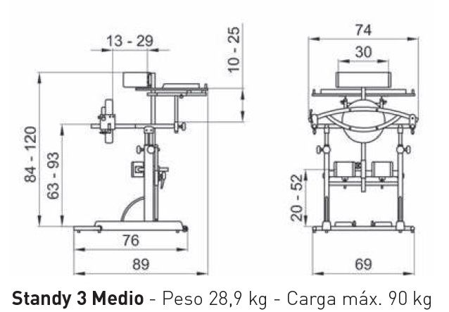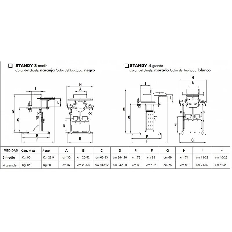 Sandyt talla 3, bipedestador, de gran capacidad,profesional a precio reducido El Bipedestador Standy 3 es el resultado de una consolidada experiencia y una constante investigación de los materiales y la optimización de las posturas. Está diseñado para usuarios de hasta 90Kg. de peso y permite lograr una posición segura para el cuerpo en bipedestación. Permite una exploración selectiva y una buena relación con el entorno físico y social.