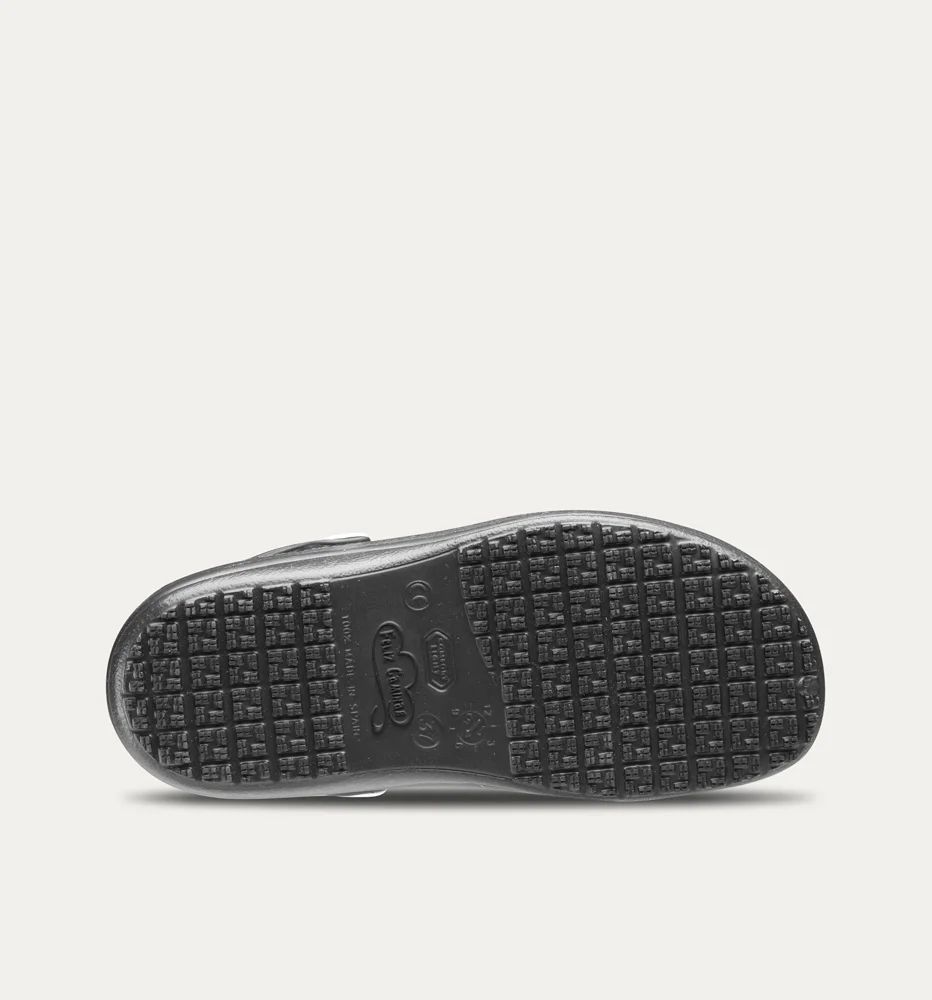 La Ortopedia Gironell les presenta este zueco que está fabricado con un material de alta calidad, 100% EVA, lo que lo hace ligero, flexible e impermeable. Su diseño anatómico y su horma ergonómica garantizan un ajuste perfecto a tu pie, brindándote la comodidad que necesitas durante largas horas de trabajo.La Ortopedia Gironell destaca una de las principales características de este zueco que es su suela antideslizante con certificación SRC, que te proporciona un agarre seguro en todo tipo de superficies, evitando posibles resbalones y accidentes en el lugar de trabajo. Además, su diseño antibacteriano y hipoalergénico te brinda protección adicional contra agentes externos.